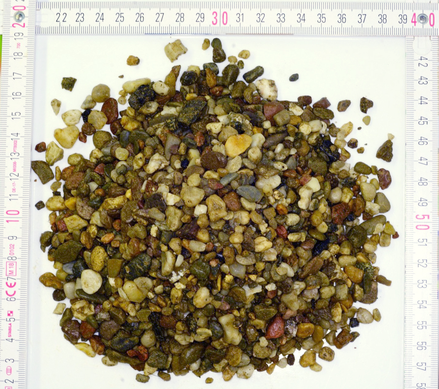 Dieser bunte Kies wurde gewaschen und gesiebt. Mit einer vordefinierten Korngrößenverteilung von weniger als 8 mm lassen die gut abgerundeten Kiesel aufprallende Objekte leicht in die Oberfläche einsinken. Durch diese abfedernde Flexibilität kann dieser Kies besondere Aufgaben im Fallschutz erfüllen (mit Zertifikat).